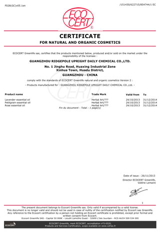 ○ 歐盟ECOCERT天然有機化妝品生產(chǎn)認證證書