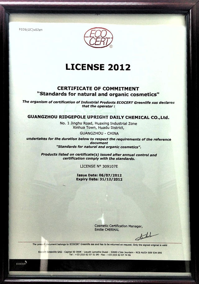 從創(chuàng)立初始,棟方股份企業(yè)領(lǐng)導(dǎo)層對推行化妝品行業(yè)綠色可持續(xù)發(fā)展就相當(dāng)重視。自2012年首次獲得法國國際生態(tài)認證中心認證以來,截至2017年,棟方股份已連續(xù)5年保持“ECOCERT天然有機化妝品生產(chǎn)認證”榮譽資質(zhì)。