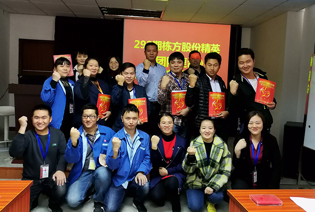 2017年11月23日,棟方股份精英《團(tuán)隊復(fù)制》第一次落地分享會在公司員工培訓(xùn)室舉行,與會人員除公司邱副總經(jīng)理、黃副總經(jīng)理、人事行政中心胡總監(jiān)及各精英團(tuán)隊負(fù)責(zé)人之外,還有幸邀請到聚成金牌講師李經(jīng)理一行蒞臨指導(dǎo)。