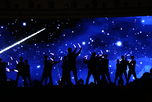 圖丨創(chuàng)意十足的快閃燈光舞《星光耀棟方》