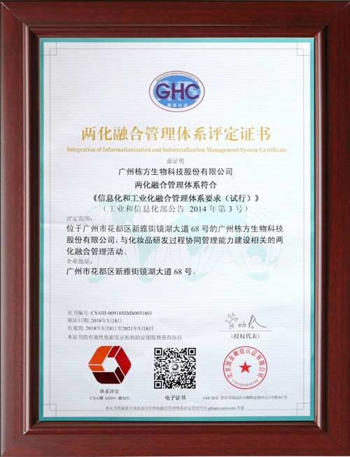 5月8日,棟方股份兩化融合管理體系順利通過專家組審核,獲得頒發(fā)兩化融合管理體系評(píng)定證書,成為率先通過該體系評(píng)估審核的化妝品研發(fā)制造企業(yè)。棟方股份成功實(shí)現(xiàn)兩化融合,企業(yè)競(jìng)爭力將會(huì)得到進(jìn)一步的提升,在管理水平和工作效率方面得到明顯改善,必會(huì)更好服務(wù)于客戶和市場(chǎng)。