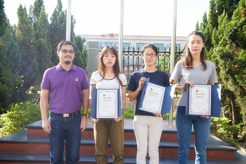 現(xiàn)場評審內容分為四大部分:專業(yè)知識、市場趨勢、配方制作、樣品制作;經(jīng)過層層考核與評選,最終技術中心許恩恩、江君如、單莉成功由助理工程師晉級初級工程師,唐董親自為他們頒發(fā)證書。