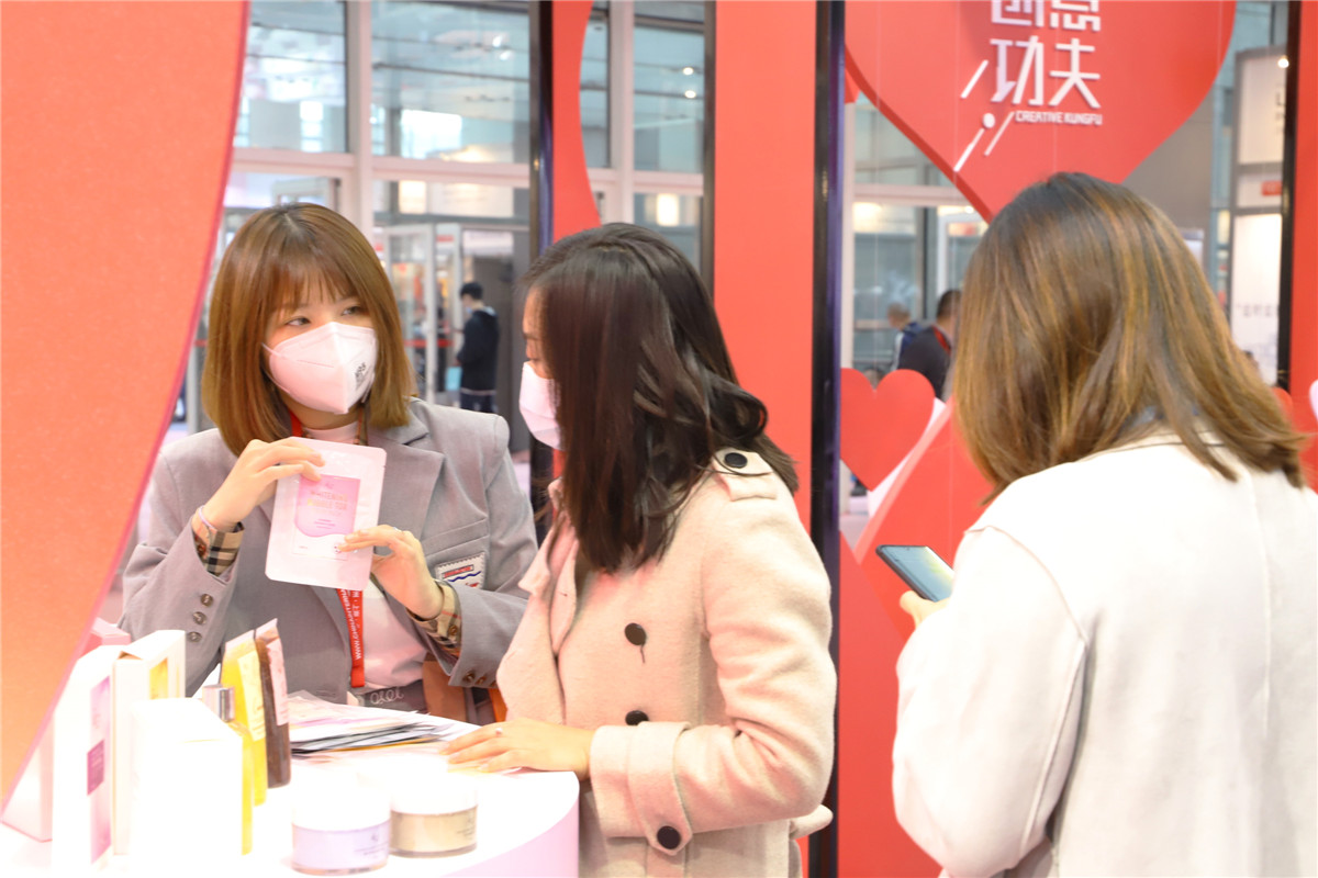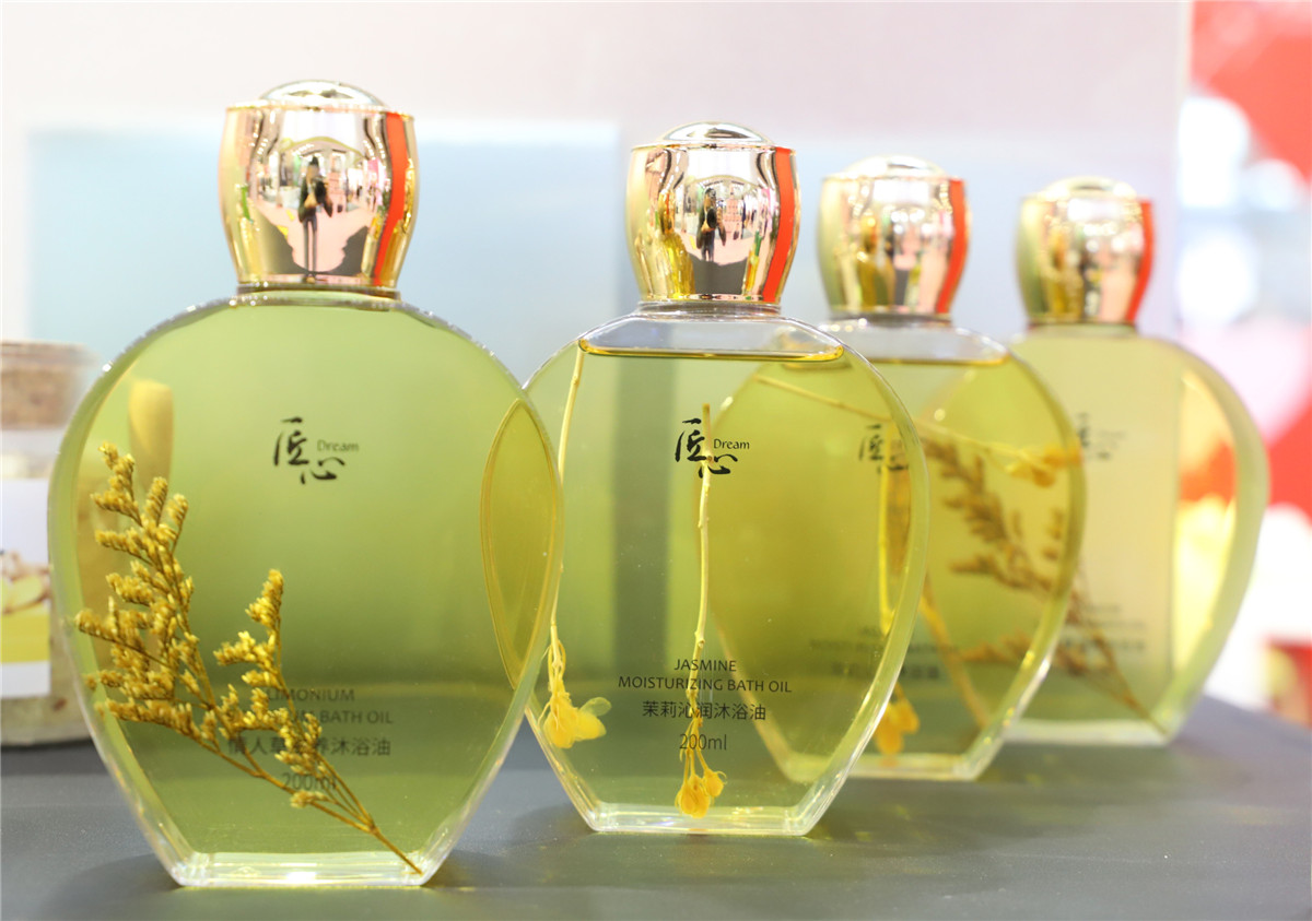 創(chuàng)意升級,科技加碼,棟方股份館內(nèi)陳列眾多創(chuàng)意星品。輕醫(yī)美、植物有機(jī)、精油、花瓣添加、彩妝、香水等全部美妝品類產(chǎn)品展現(xiàn)眼前,向每一位駐足參觀的客戶,展示著棟方股份技術(shù)與藝術(shù)完美結(jié)合的創(chuàng)新成果。